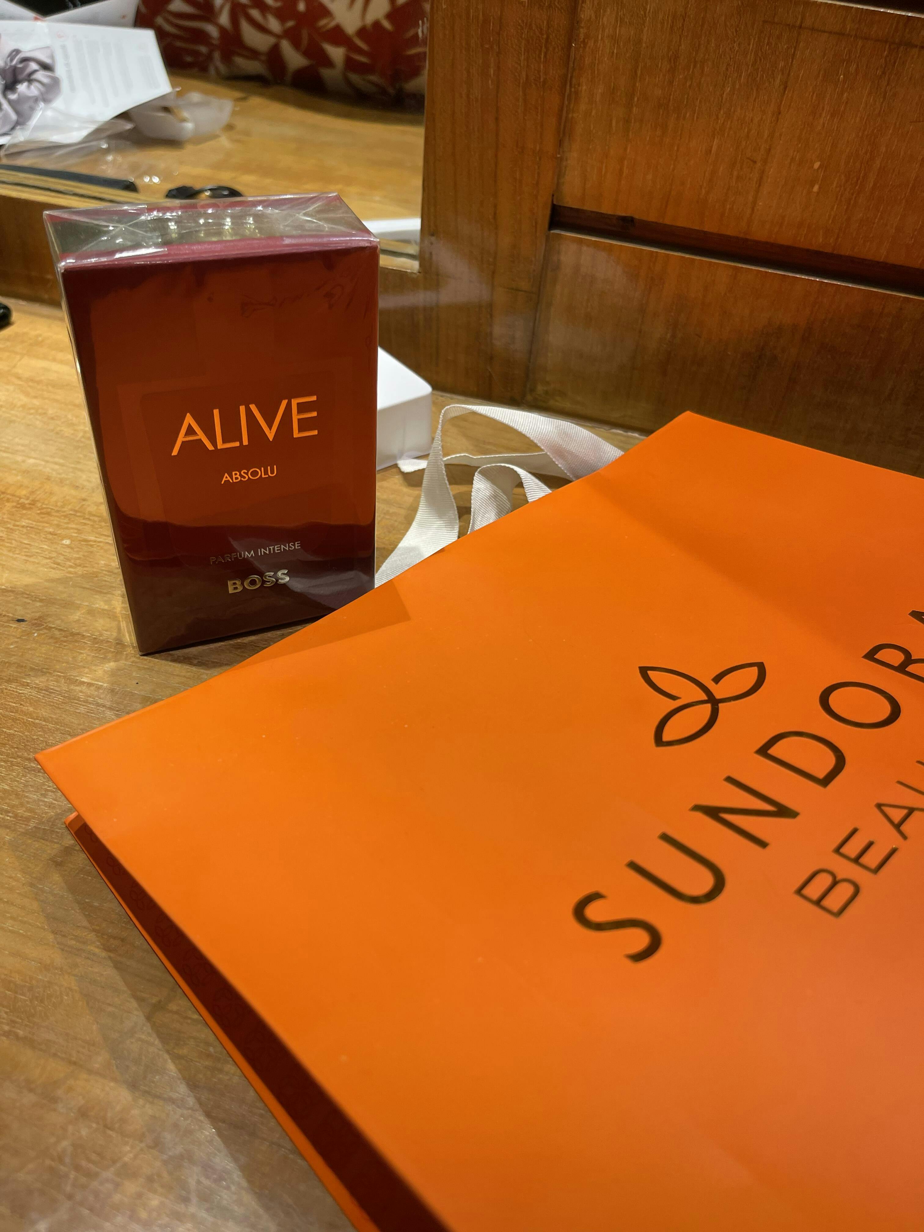 BOSS Alive Absolu Parfum Intense, created to convey the confidence of women living without limits. Presented in a bottle with rich red lacquering, this captivating scent makes an impression with warm leather followed by vanilla and vibrant patchouli. Richly layered ingredients ensure a lasting woody fragrance.